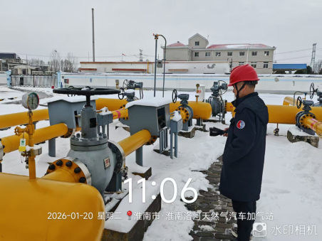 极端天气下,燃气安全保障是重中之重。淮南中燃第一时间组织员工对各燃气场站、门站及重点设施开展专项巡检,逐一核查阀门运行、仪表参数和管线接口情况,针对低温冻堵风险,对关键设备和户外阀门加装保温、加热装置,实现燃气管网全覆盖、无死角排查,切实消除安全隐患。