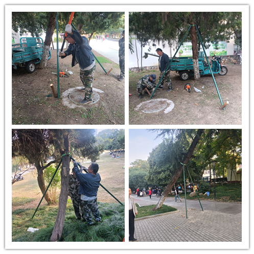 为保护树木健康生长,提升绿化品质,打造优质景观效果,近期龙湖公园对园区内树木架杆进行全面更换调整。