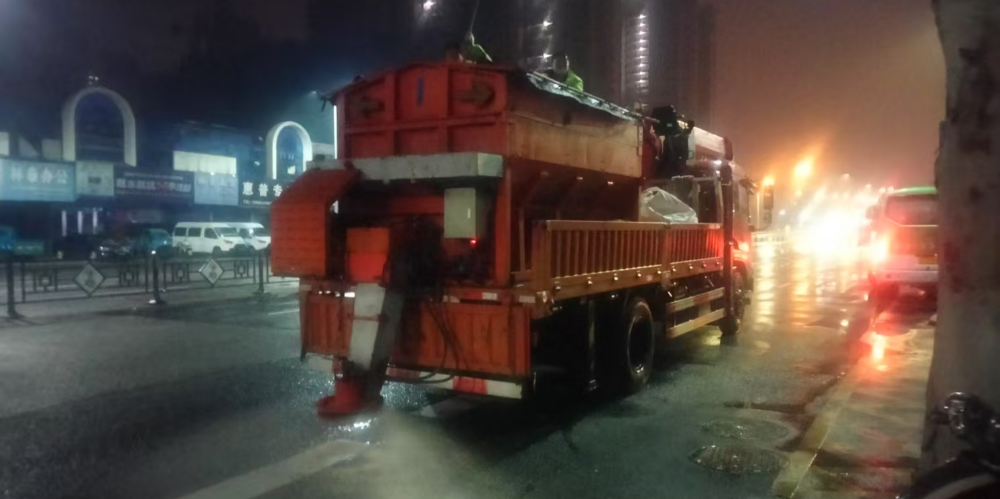 科学调度,全力攻坚。采取“机械为主、人工为辅、24小时值守、多轮次作业”的模式,全力应对雨雪冰冻挑战。截至1月20日清晨,累计投入作业人员345人次,对市区范围内18座立交桥、下穿桥、地下通道、人行天桥等重点区域实施不间断安全值守与巡查。同步调配各类专业机械车辆82台次,包括铲雪车、装载机、融雪剂撒布机等重型设备及辅助车辆,开展多轮次融雪剂播撒和积雪清扫。作业累计使用融雪剂246吨,并动态补充;在桥面、坡道等关键部位铺设防滑草垫1000余个,最大限度降低道路湿滑风险。