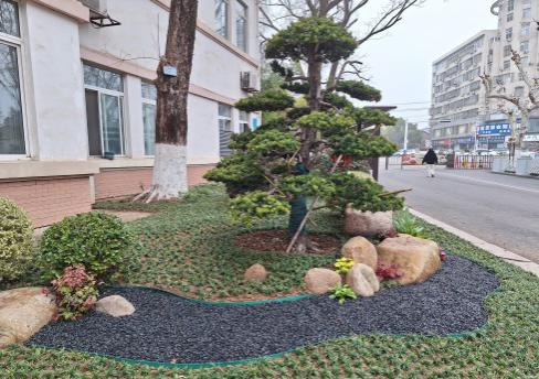 本次补植聚焦园区主干道、景观节点等区域,通过严格遵循“适地适树、乔灌结合”原则,优选了亮晶女贞、罗汉松、红花檵木桩等景观树品种,通过苗木搭配,构建层次分明的立体化景观。施工现场,园林工人规范作业,严格按照挖坑、扶苗、填土、夯实、浇水等全流程精心栽植。专业技术人员全程现场指导,严把苗木质量关、栽植规范关和后期管护关,确保“栽一棵、活一棵,种一片、绿一片”。