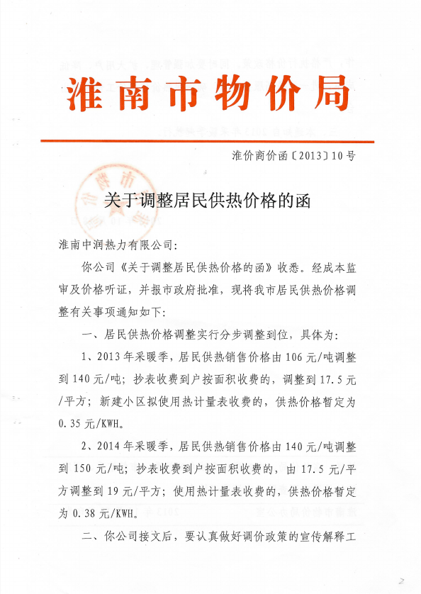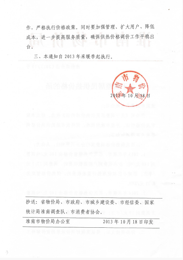 淮南市居民供热价格收费标准.doc